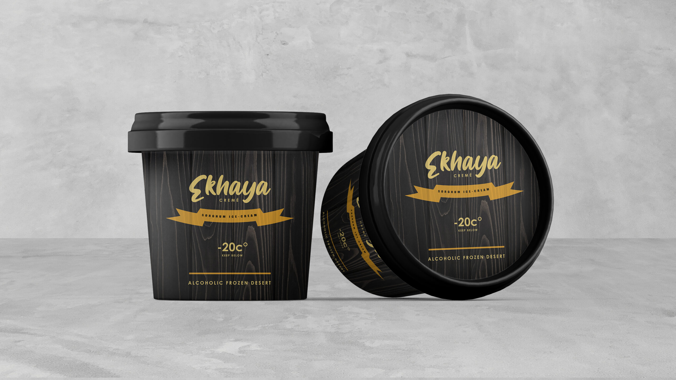 Ekhaya Cremé is renowned for its cultural indifference and sophistication as an alcoholic frozen dessert in the form of sorghum ice-cream. The branding promotes the product as an African premium product which exhibits the quality that Africa has to offer.